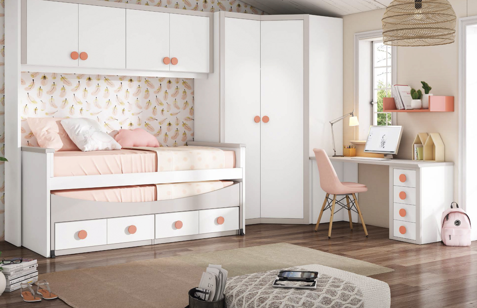 - Fabricada en laca blanca y piedra con tirador melocotón.