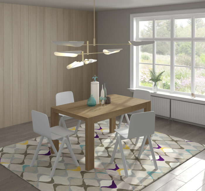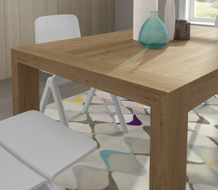 - Mesa comedor con 2 extensibles 45cm color nogal.