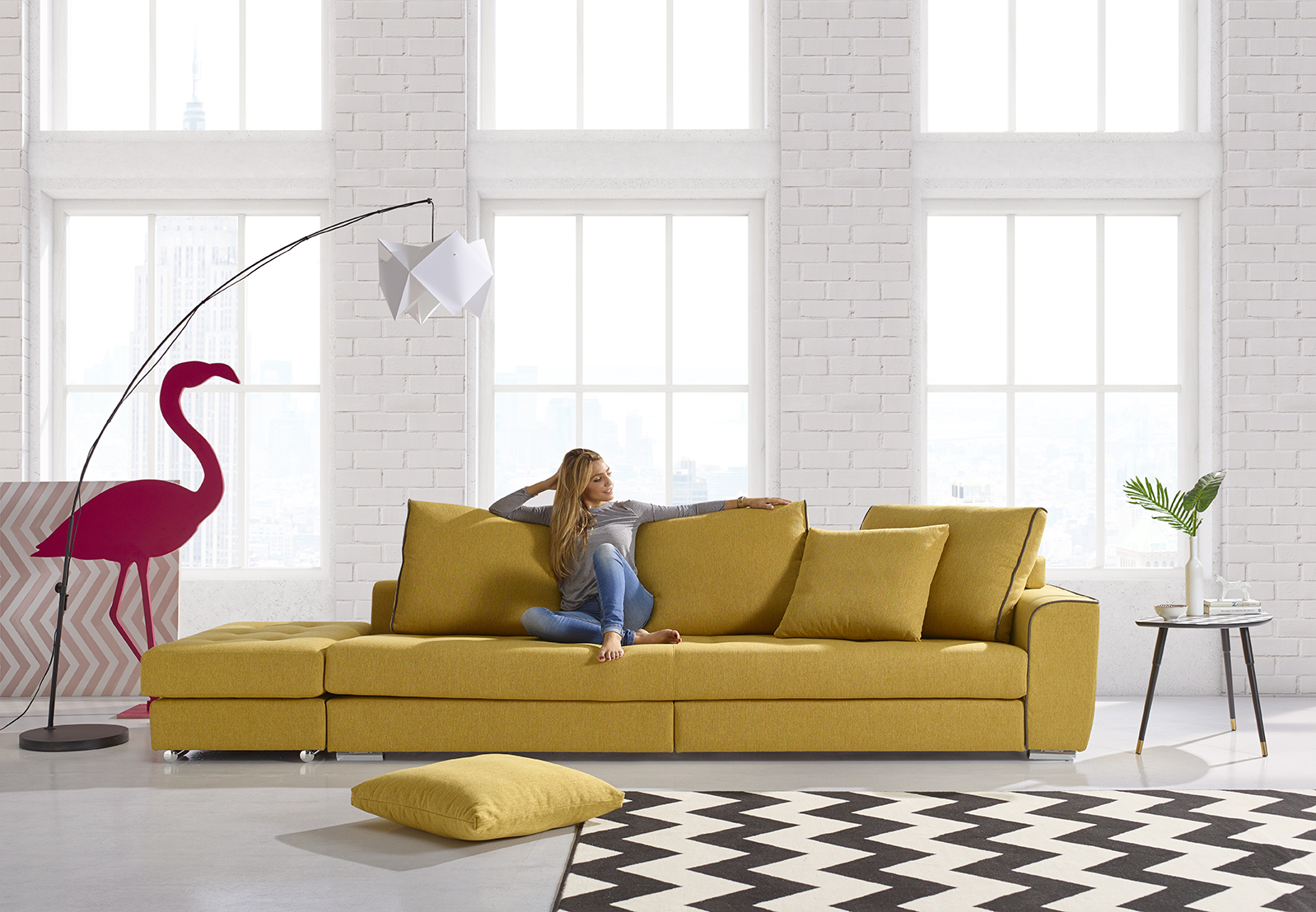 - Sofá fijo 3 plazas con chaise long grande.